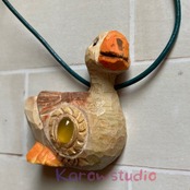 木と石の一雫(ひとしずく)ペンダント〜ガチョウとハニーカラーカルセドニー