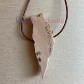 紐は上質な革紐で金属アレルギーの方でも安心です。金具を使わずにペンダントトップに直接通しているため、落としにくい仕様となっています。首の後ろで調節するためのビーズにも一点一点ウッドバーニングを施し一点ものにこだわりました。アクリル着彩。木製で大変軽いため、ご自分で組み合わせて複数着用することもできます。紐の長さを調節することでバッグチャームとしてもお使いいただけます。