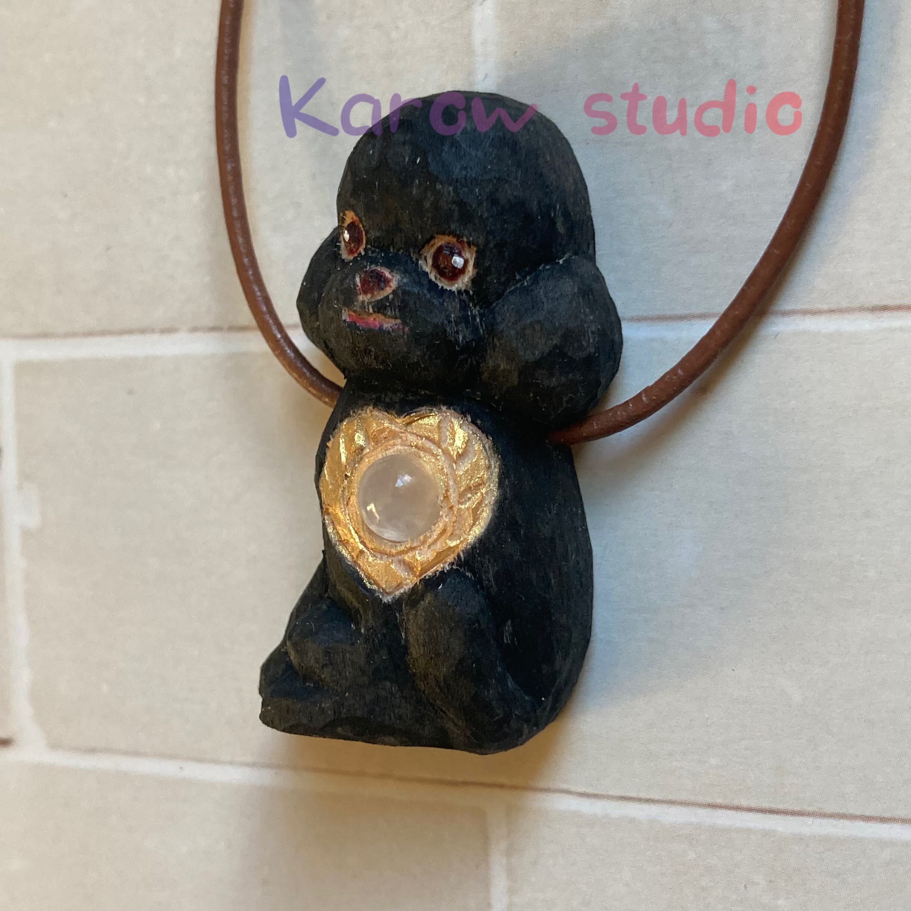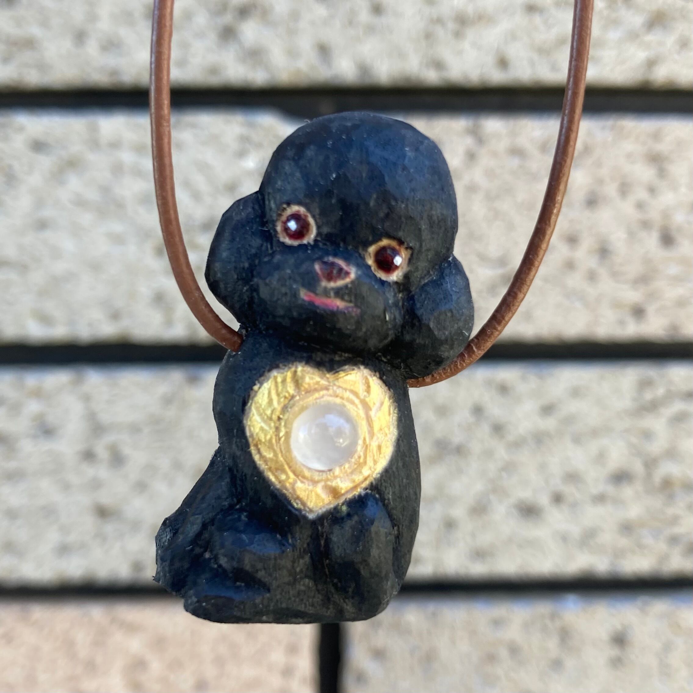 ムーンストーンの優しい白が黒い毛色を引き立ててくれます。クリクリの目がかわいい。黒に黒の肉球だとほぼ見えないのですが実は描いてあります。ご希望があればピンクにします。